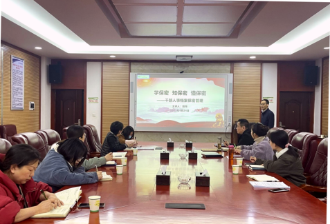为做好保密宣传教育工作,提高保密工作管理能力,4月24日上午,人事处党支部书记阳海以“干部人事档案保密管理”为题,在电气楼310会议室为全体党员讲授保密专题党课。